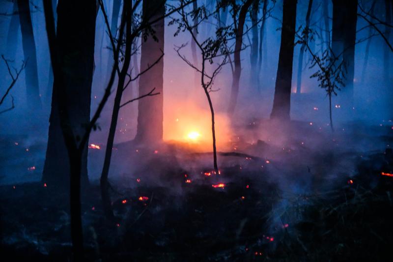 德国东北部爆发森林火灾 消防队员紧急扑救