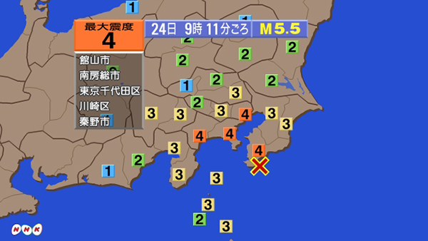 日媒:日本东京发生5.5级地震,震源深度60千米