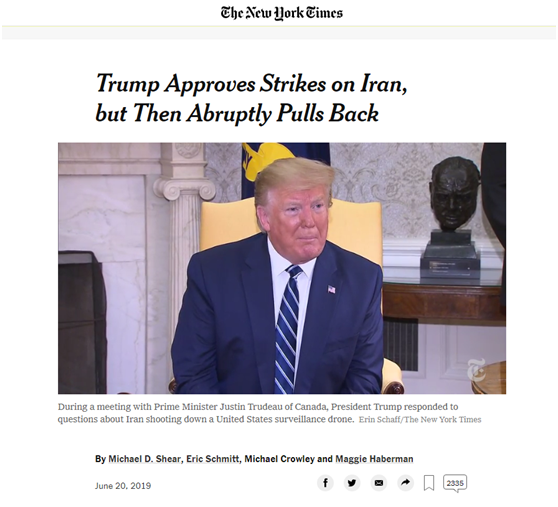叫停军事打击伊朗计划后,特朗普表态:我不寻求战争