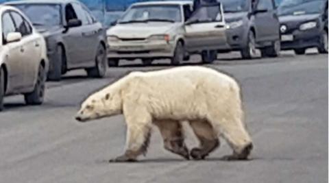 俄罗斯街头出现饥饿北极熊 专家称全球变暖所致