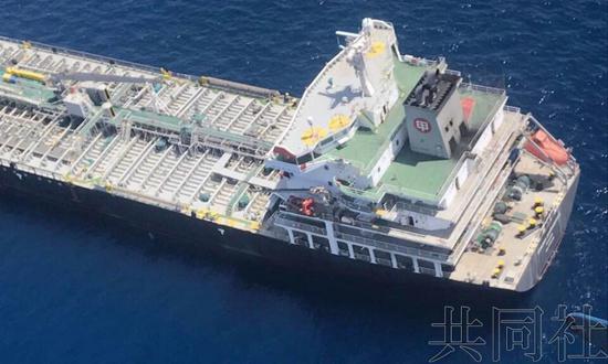 美海军对外展示日本遇袭油轮 称爆炸物似伊朗炸弹