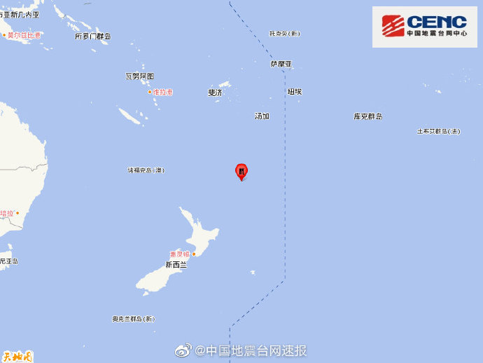 新西兰克马德克群岛发生7.2级地震 震源深度20千米