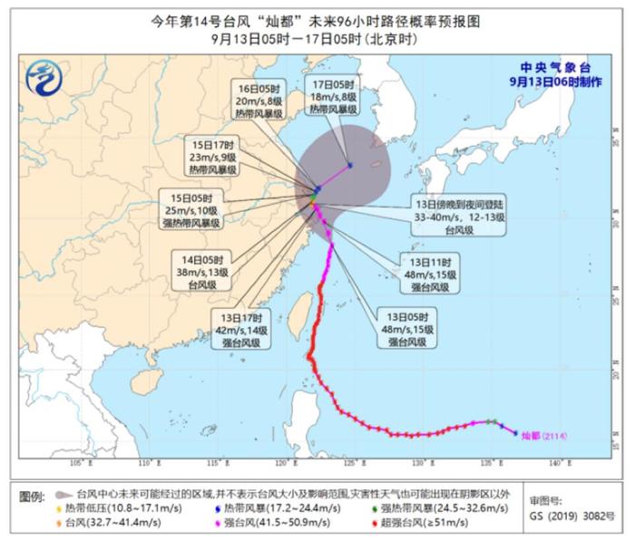 此外,受“灿都”影响,预计12日中午到13日中午,浙江嘉兴、舟山沿岸将出现70—140厘米的风暴增水,宁波沿岸将出现100—180厘米的风暴增水,台州沿岸将出现60—100厘米的风暴增水,温州沿岸将出现50—80厘米的风暴增水。浙江镇海站、石浦站将出现超过当地蓝色警戒潮位的高潮位。风暴潮预警级别为蓝色。(完)