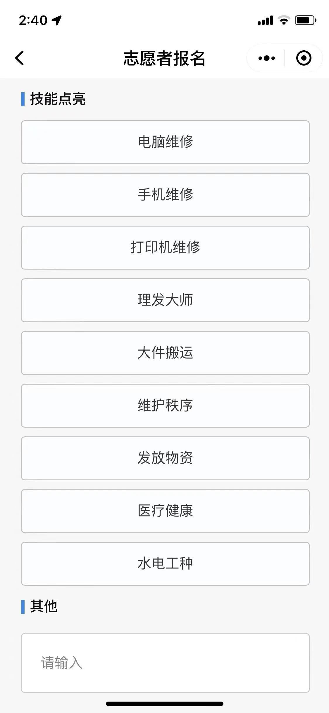 感染者入舱后,除医疗服务需求之外,也有各类生活服务需求。通过小程序,大家可以轻松查看入院须知、舱内地图,了解方舱资讯,还可以通过小程序查询到同住方舱的亲朋信息,发布互助信息等。与此同时,感染者还可以通过小程序登记自己的技能与特长,发挥互帮互助精神,申请成为志愿者。舱内志愿者不仅互助解决如理发、电脑维修、手机充电、大件物品运输等日常需求,还能在关键时刻发挥“达人”之所长。瑞金医院党委副书记、副院长毕宇芳介绍:“在方舱内,不少感染者中的党员群众也发挥了积极作用,在小程序刚投入使用2小时内,就有5人报名IT志愿者,他们帮助舱内医护人员一起解决电脑、打印机维修等问题,用行动与医护人员并肩战‘疫’。”
