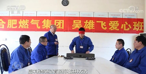 安徽省合肥燃气集团蜀山服务所维修班班长、全国劳动模范吴雄飞说:“干一行爱一行专一行,在部队里面有盲眼拆枪最基本训练的方式,后来我想通过盲眼拆灶的方式,把灶具拿过来蒙着眼睛拆一拆,练一练。”