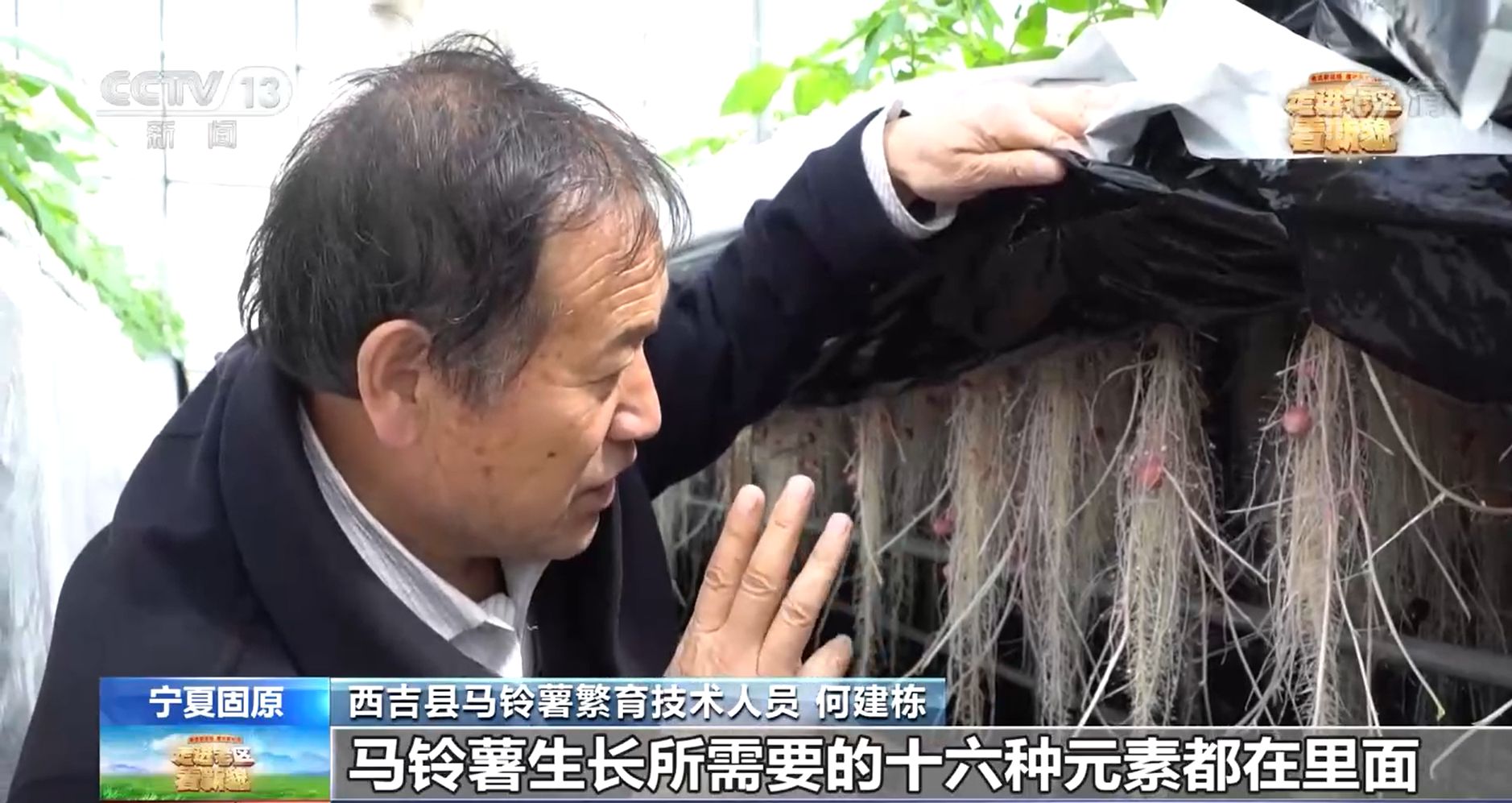 总台记者:我现在是在宁夏固原的一处马铃薯繁育基地。说到马铃薯的育种,很多人认为种马铃薯靠种子,但其实它是依靠块茎。以往西海固的老百姓们会把去年的马铃薯切成一块儿一块儿的种到田里。但是这样做第一个是产量不高,第二个是极容易遭遇病虫害。所以如今,在现代化的大棚当中,人们通过水培、物培等等方式来孕育马铃薯的种苗,这些种苗也为来年的丰收孕育了新的希望。