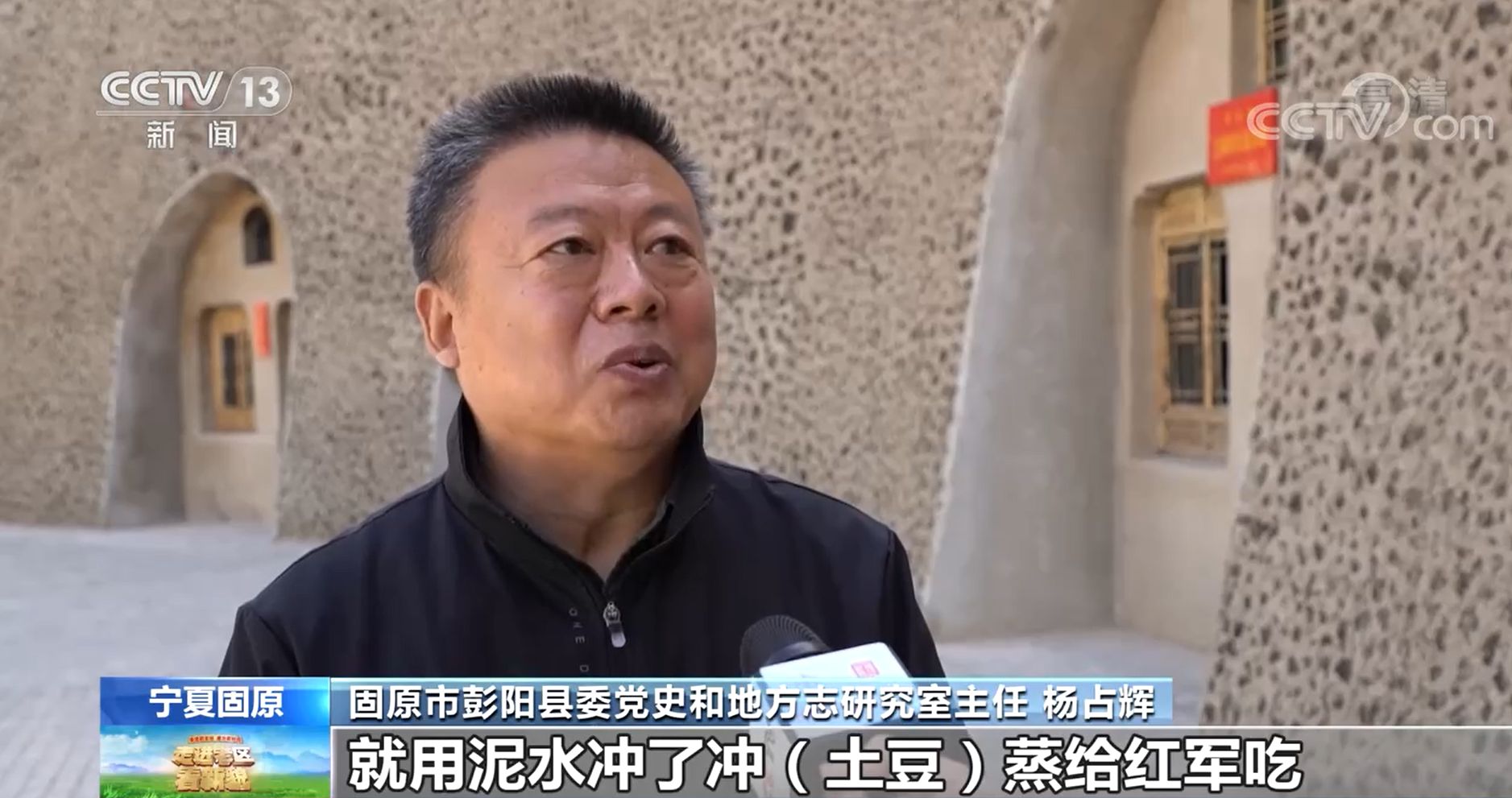 固原市彭阳县委党史和地方志研究室主任 杨占辉:因为缺水,就用泥水冲了冲(土豆)蒸给红军吃。(红军)一边吃着带泥的土豆,一边说“今天我们吃带泥的土豆,是为了明天老百姓不吃带泥的土豆”。