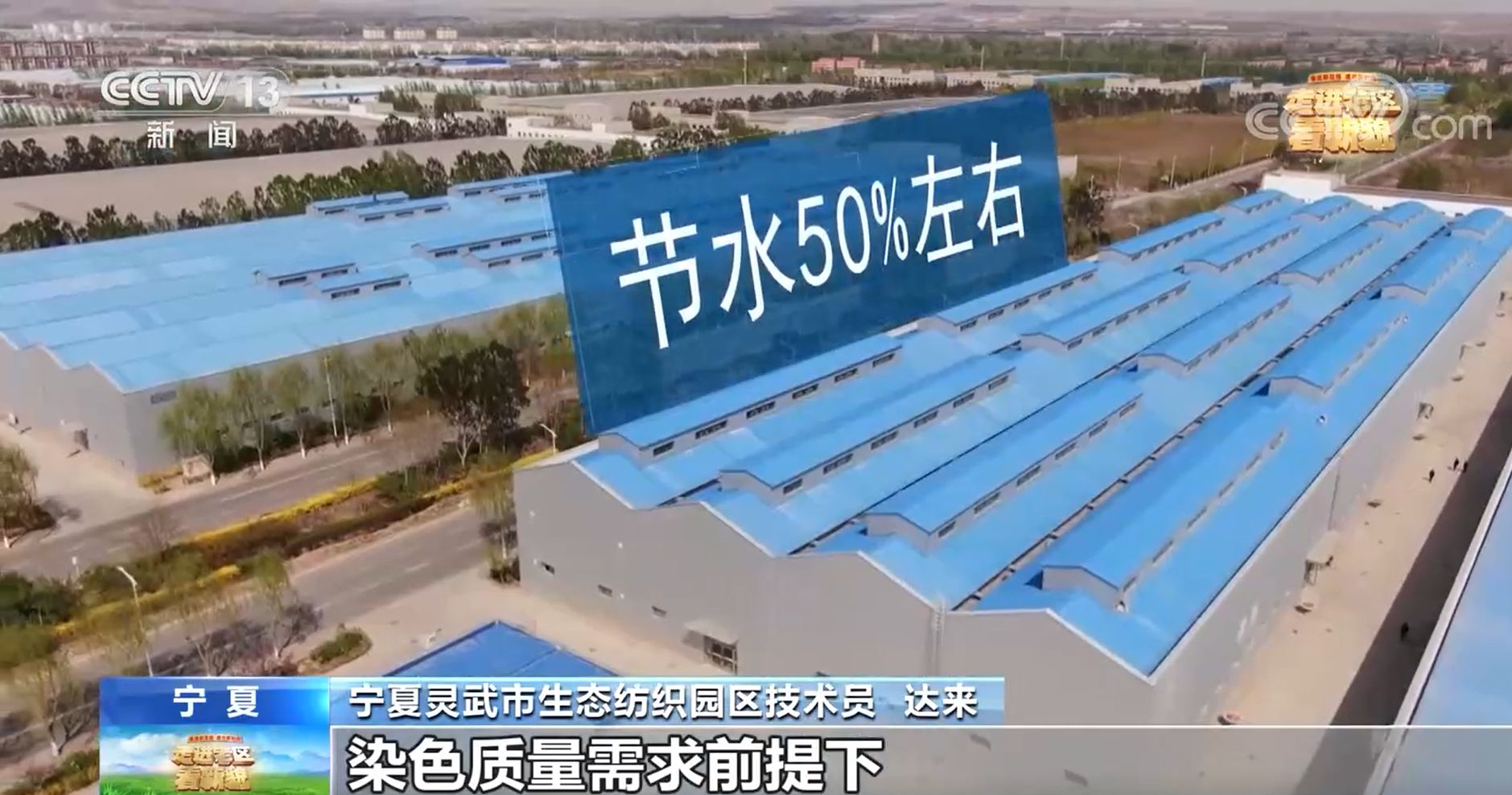 宁夏灵武市生态纺织园区技术员 达来:(污水)COD(化学需氧量)和氨氮要下降60%左右,总氮要下降30%左右。同时,它是在满足我们染色质量需求的前提下,节水可以节50%左右。