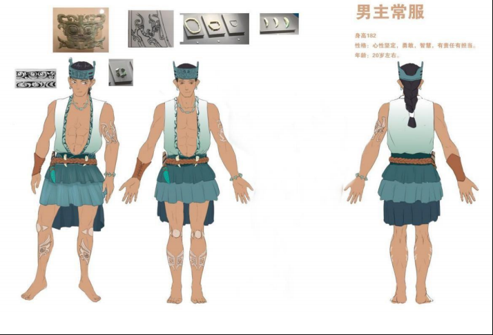 男主鱼凫的细节设定,比如身高 180 厘米,这并不是凭空想象,而是参照了三星堆出土的国宝级文物青铜大立人像的180 厘米高度。并且,鱼凫的形象装扮也保留了青铜大立人像的特点。“这也是对文物的一种致敬。”杨建松这样解释道。