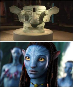 三星堆博物馆商铜纵目面具(上图)。电影《阿凡达》剧照(下图)