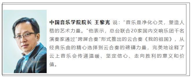 中国艺术研究院副研究员、知名音乐评论家 王纪宴表示,总台联合国内20个优秀乐团的阵容聚焦中外音乐杰作,是值得称赞的壮举。