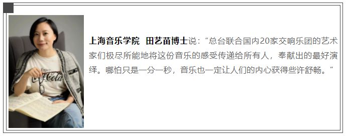 疫情当前,媒体人和音乐人同心同向同行,从策划到邀约,从录制到播出,只有短短不到两周的时间,各乐团的演奏家和节目组齐心协力,克服录制困难,不断创新编排形式,最终实现全国20家交响乐团汇聚云端,绽放华章。