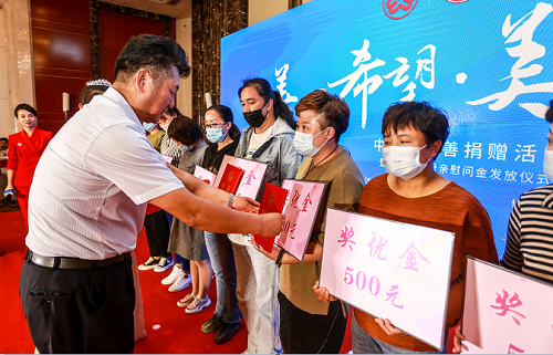 2019年活动现场为自强单亲母亲发放奖优金及慰问品