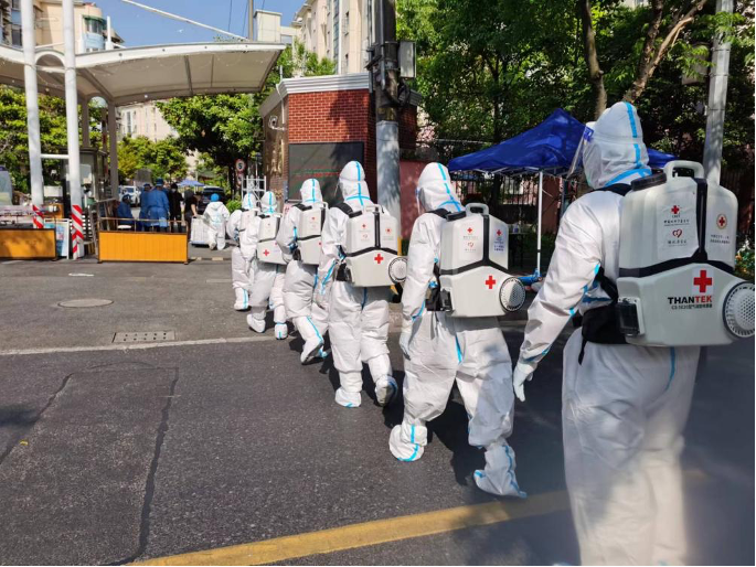 这支来自上海本地的志愿队伍是投身抗疫一线的红十字系统人员的缩影。4月19日以来,中国红十字系统共组织了来自上海、浙江、山东、四川、重庆等地的101名队员,组成中国红十字防疫消杀志愿服务队,分别在浦东、徐汇、闵行、宝山等地开展作业。截至5月8日,共出动队员1090人次,总消杀面积超2226万平方米,含涉阳楼栋4919栋。“接下来,我们要继续发扬不怕吃苦、连续作战的作风,为打赢大上海保卫战贡献更多力量。”高博说。