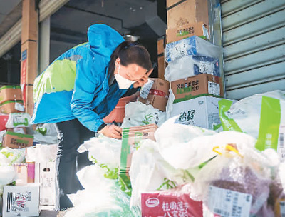 李小雨在整理准备送出的快递物品。 |