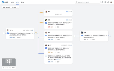 在飞书OKR 中,管理者能清晰地看到战略如何层层落地,最核心的目标由哪些员工来承接,以及哪些人在拆解目标中驱动着创新。