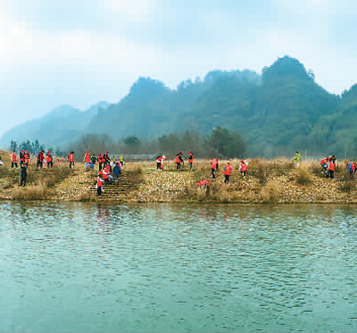 3月5日,湖南省怀化市通道侗族自治县万佛山镇,志愿者队伍在玉带河沿岸清理河滩垃圾。 |