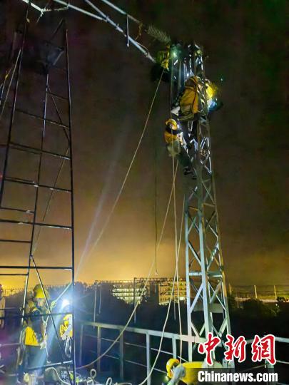 广西沿海铁路公司钦州供电段及时处理架空地线脱落隐患。 张成毅 摄