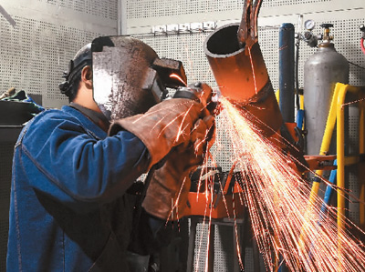 陕西汽车技工学校学生在学校内的国际标准焊接技术培训中心内进行焊接学习。 |