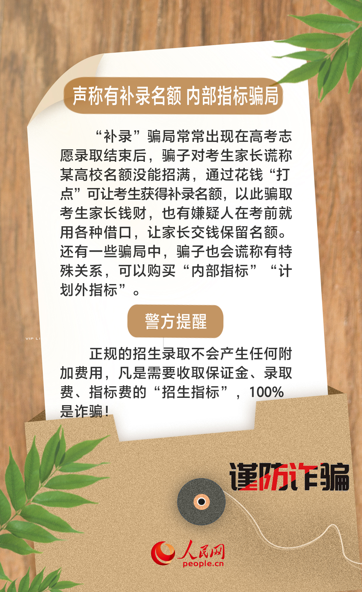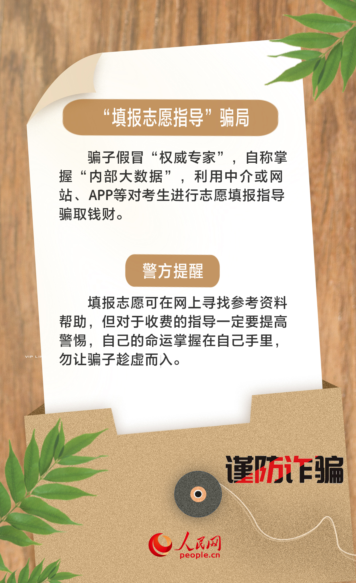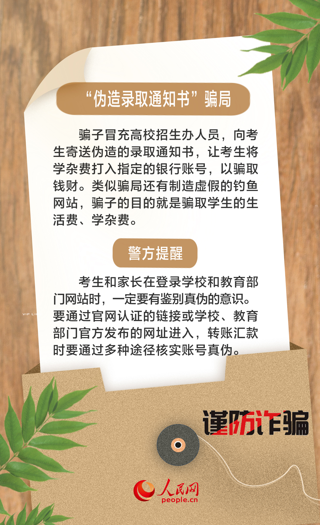 高考结束,考生和家长别着急松口气,从查询分数、填报志愿到录取……每个环节,可能都有骗子等你“入坑”。人民网为您梳理了这些骗局,切勿轻信。