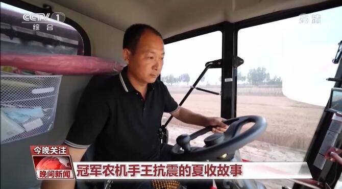 陕西农机手 王抗震:后面还有其他地方的老百姓等着我们收割,晚上我们还得加班抢出时间来。收割机上边的灯光特别亮,晚上收割的时候和白天一个样。