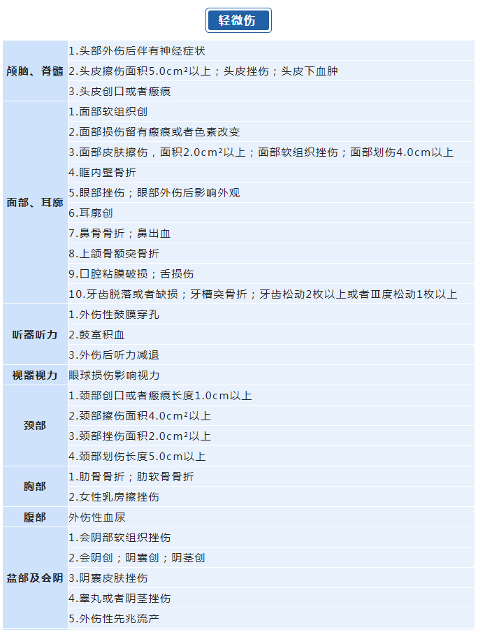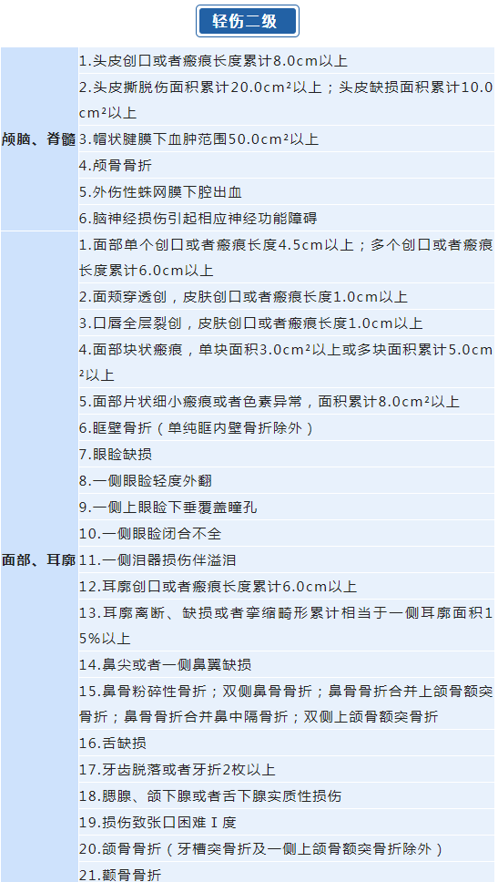 在刑事案件以及一些治安案件的办理中,人体损伤情况是重要的定罪量刑及治安处罚因素。最高人民法院、最高人民检察院、公安部、国家安全部、司法部联合发布的《人体损伤程度鉴定标准》中,何种情况属于轻伤二级?如何评定轻微伤?具体如下。