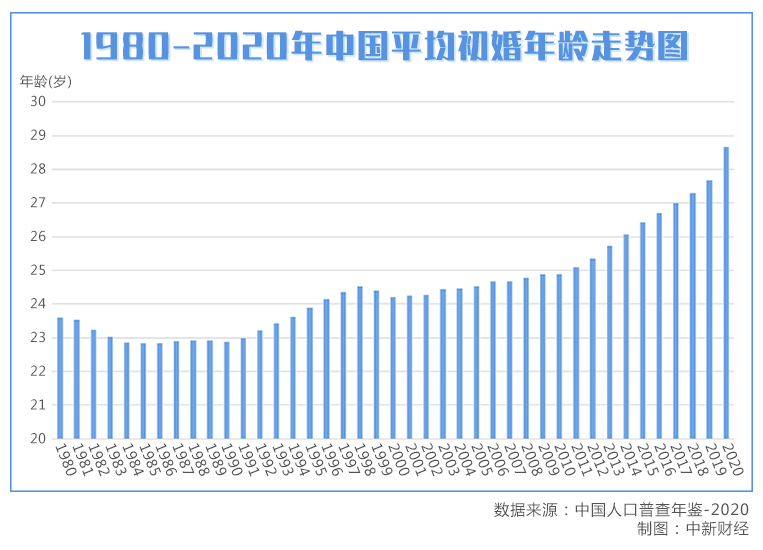 2020年平均初婚年龄为28.67岁