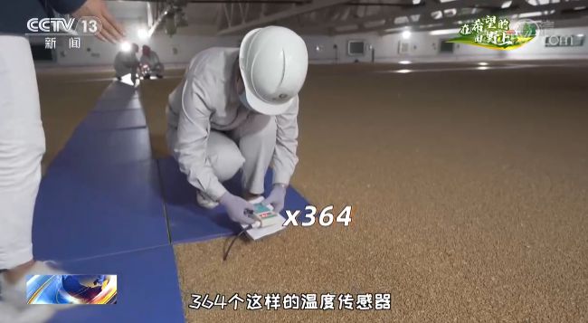 在这里,每一粒小麦都是有生命的、会呼吸的,过热就会发霉生虫。在这个麦堆里面其实埋藏了364个这样的温度传感器,工作人员以此为依据,对小麦进行实时的温度监控,(跟随温度变化)进行补冷。与传统的空调相比,内环流控温系统节约能耗在80%左右,这样一间粮仓一天就可以节约400度电,这相当于一个三口之家两个月的用电量。