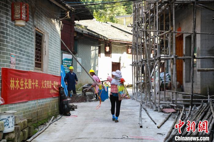 2022年5月,甘肃省武威市天祝县公安局治安大队大队长赵涛(左)入户与村民交谈。(资料图) 甘肃省公安厅供图
