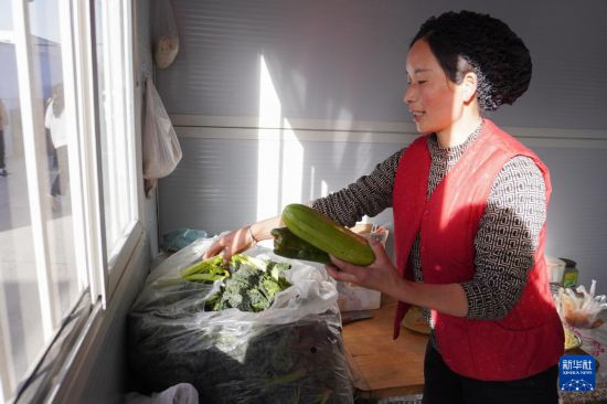 12月29日,在积石山县刘集乡高李村板房安置点,受灾群众在板房内挑拣蔬菜准备做饭。新华社记者 马希平 摄