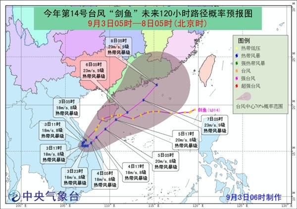 今年第14号台风“剑鱼”形成 琼粤等地将出现强降雨