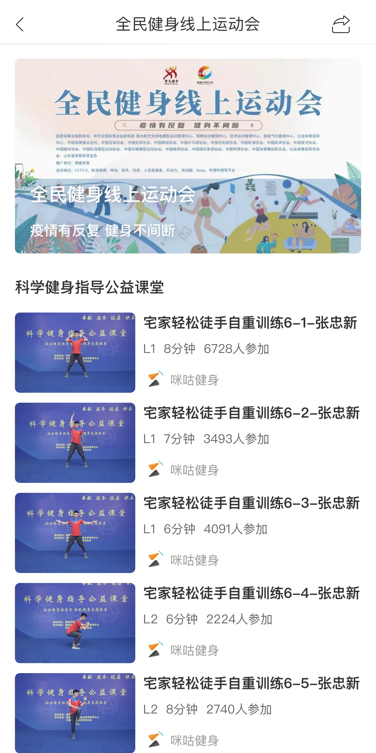 中新网北京5月9日电 为展示疫情防控常态化下全民健身开展情况,在人员不聚集、不流动的前提下,为群众提供线上展示、交流和互动的机会,指导居家群众开展科学健身,由体育总局群体司、中华全国体育总会群体部主办的“全民健身线上运动会”已于4月28日正式上线。而《科学健身指导公益课堂》也于5月7日上线,群众在其中可以选择AI模式,感受健身新体验。截至5月5日,累计超过50余万人参与线上运动会。