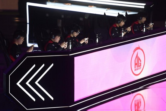 5月21日,成都AG超玩会队选手在比赛中。新华社记者黄宗治摄