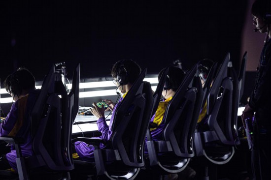 5月21日,南京Hero久竞队选手在比赛中。当日,在杭州电竞中心举行的“韵味杭州”电子竞技全国邀请赛王者荣耀亚运版决赛中,成都AG超玩会队以3:2战胜南京Hero久竞队,获得冠军。新华社记者吴壮摄