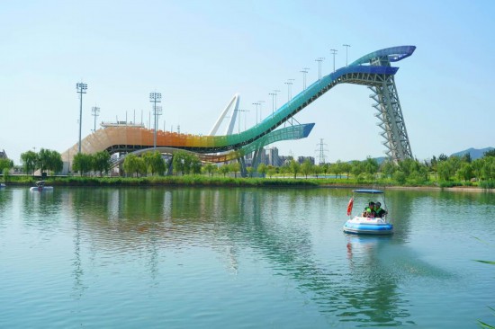 这是8月23日在位于北京市石景山区的首钢园拍摄的首钢滑雪大跳台。新华社记者 任超 摄